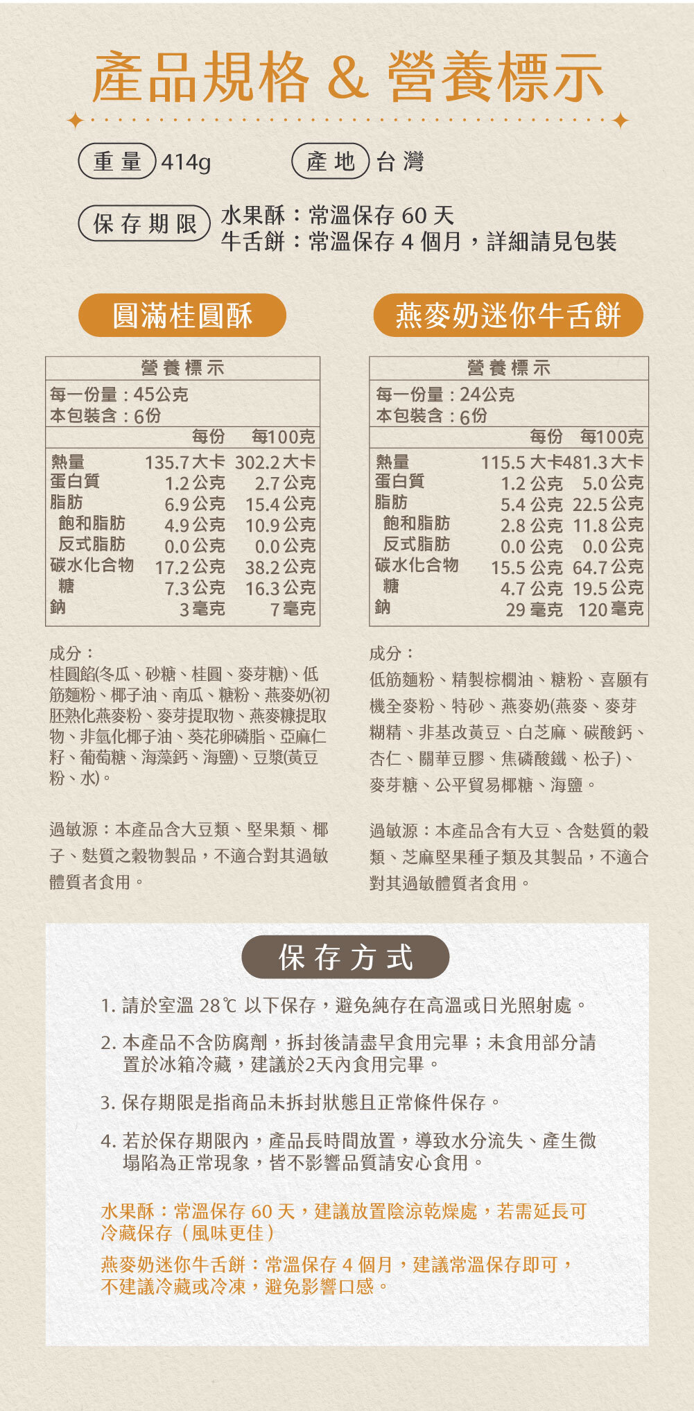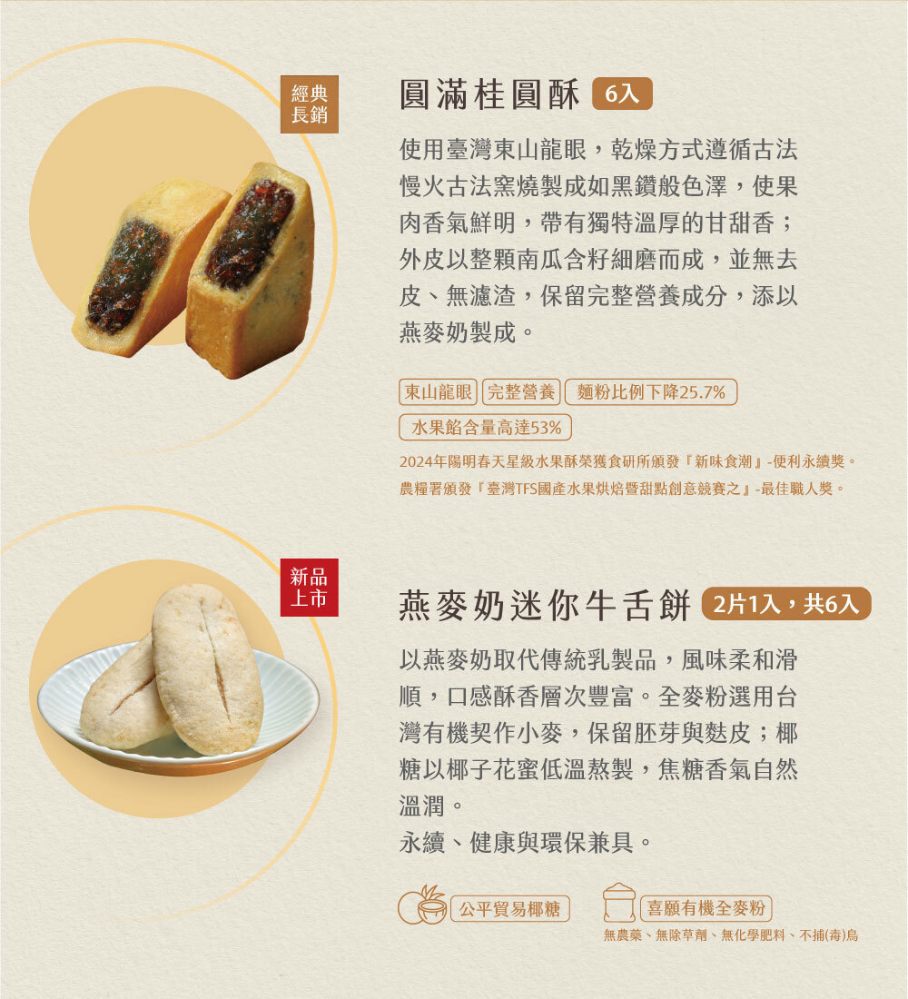 ◾2026年節圓滿禮盒內含:圓滿桂圓酥6入+燕麥奶迷你牛舌餅6包(兩入一包)
