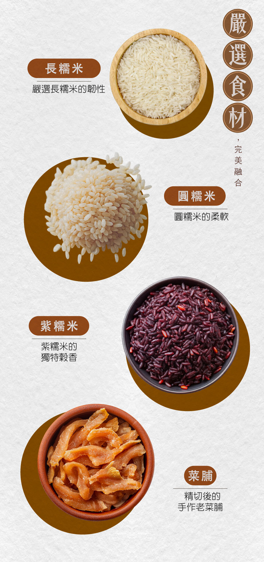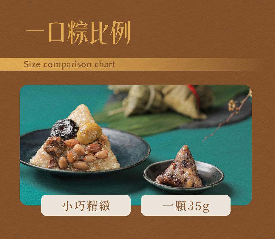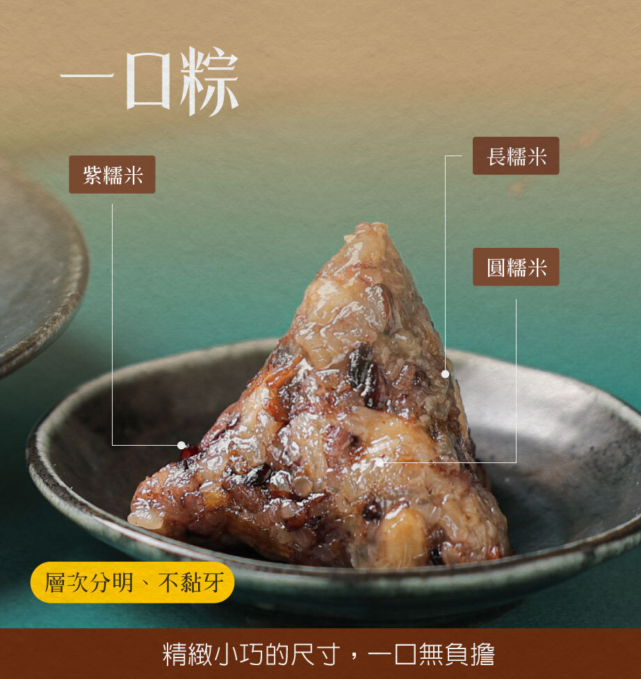迷你小巧的一口粽,精選糯米與米豆,配上菜脯畫龍點睛的香氣