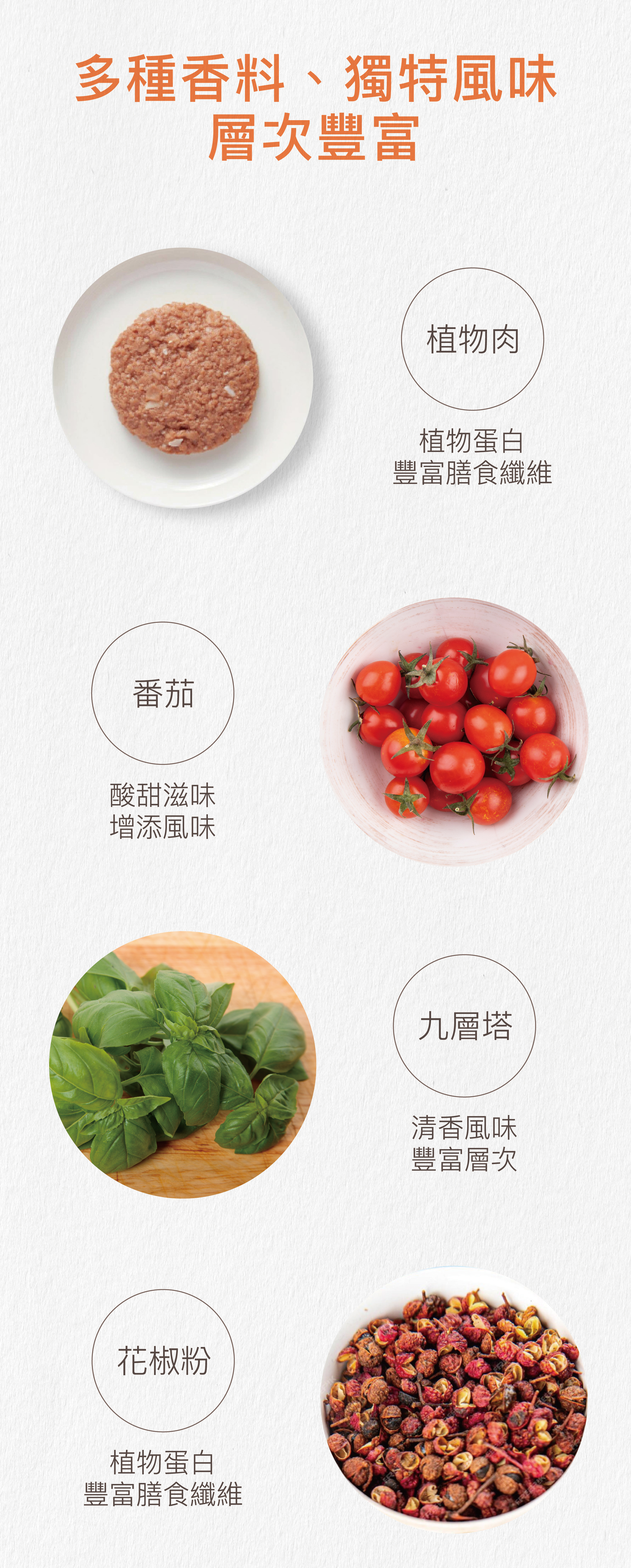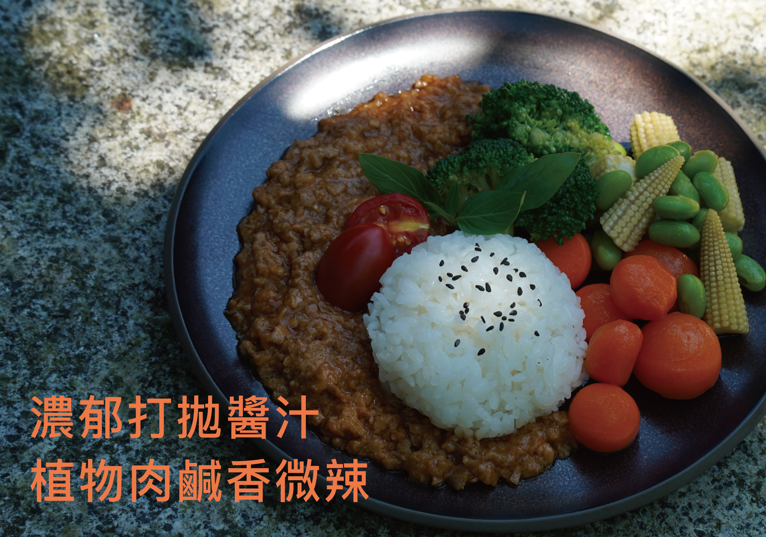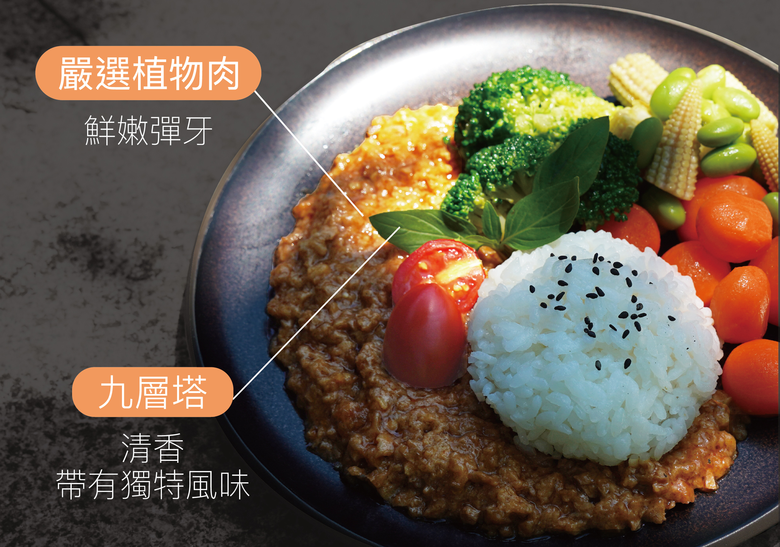 打拋醬滲透入植物肉內,每一口都充滿九層塔的清香與香料的微辣刺激,鮮香夠味,令人食慾大開!