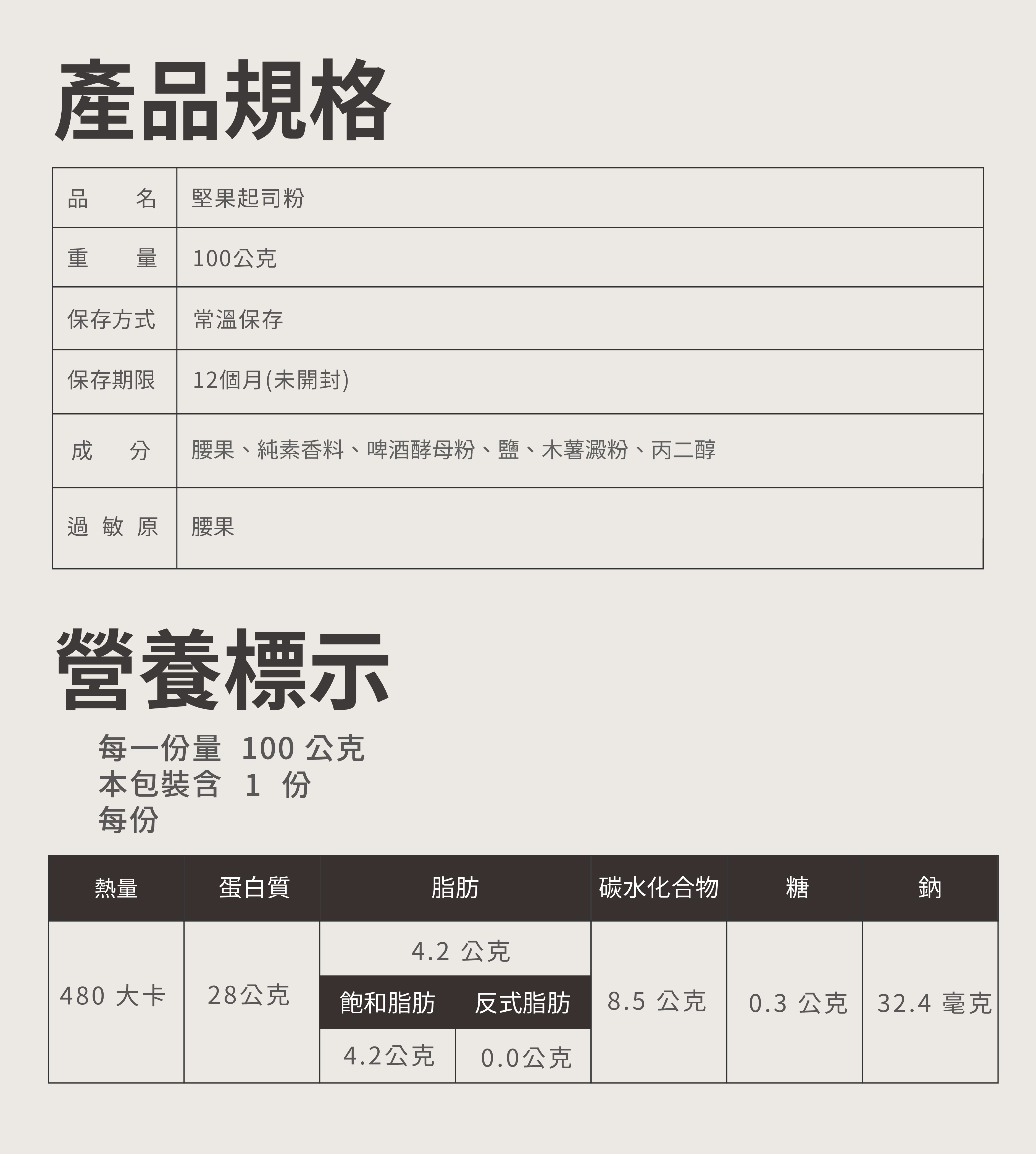 以腰果製成的純素堅果起司粉,無乳製品成分。灑在義大利麵、披薩上,輕鬆增添風味!